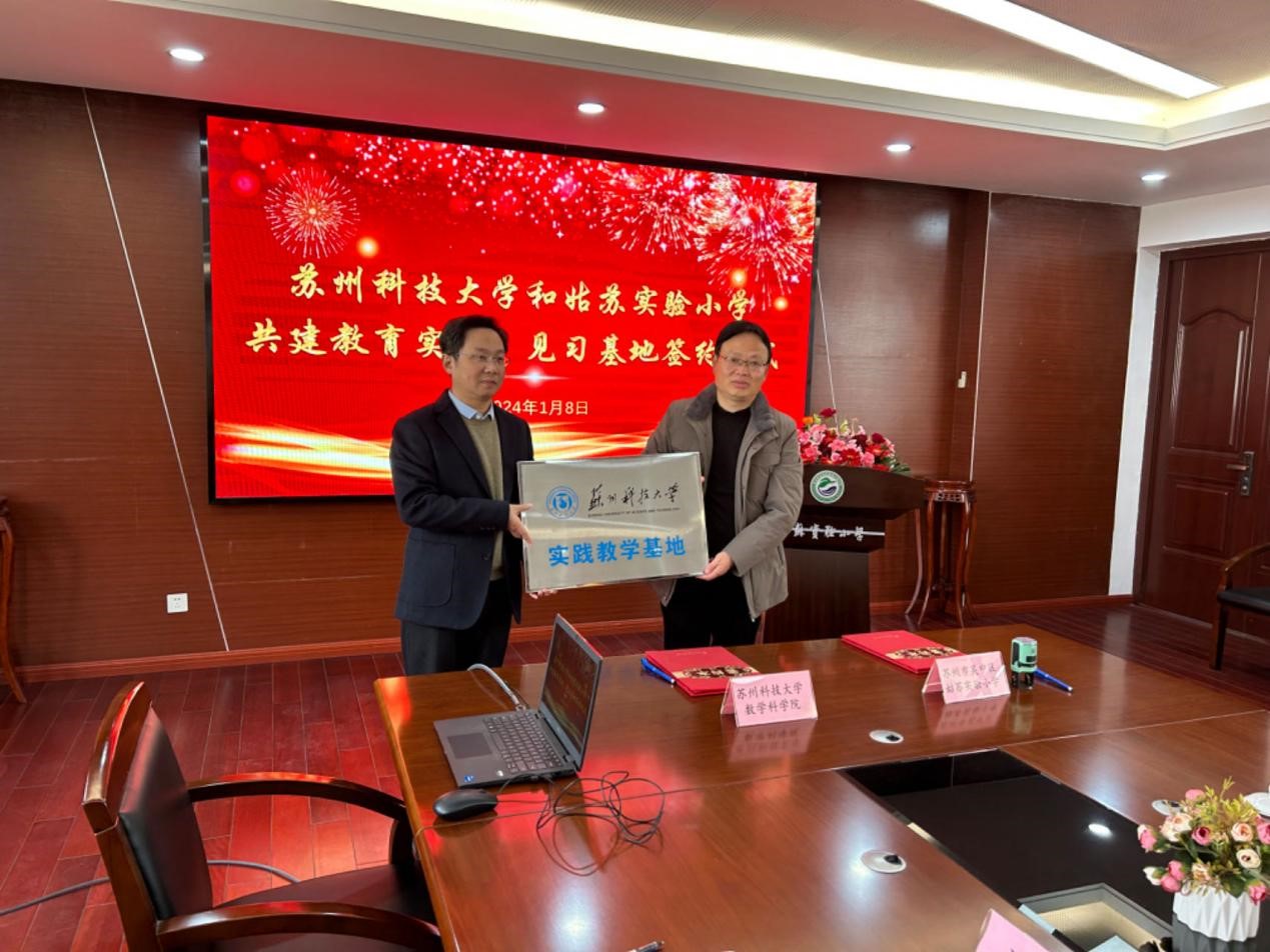 2024年1月8日上午,必一运动与吴中区姑苏实验小学举行“共建教育实习、见习基地”签约挂牌仪式。吴中区教育局副局长程朝阳、张伟炜、姑苏实验小学董事长王春华、必一运动经理黄志刚、副经理陈洋及数学系主任刘增等出席签约挂牌仪式。