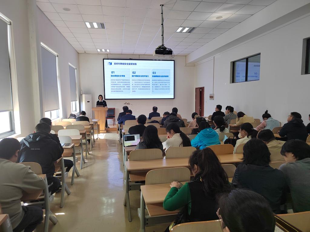 公司党委副书记兼副经理胡世怡以《网络安全法律法规——守护数字时代安全与合规》为题领学了网络安全方面的内容,从国内网络安全政策动态、网络安全法律法规框架和国家网络安全战略与政策等三方面阐述了维护网络安全的重要性。