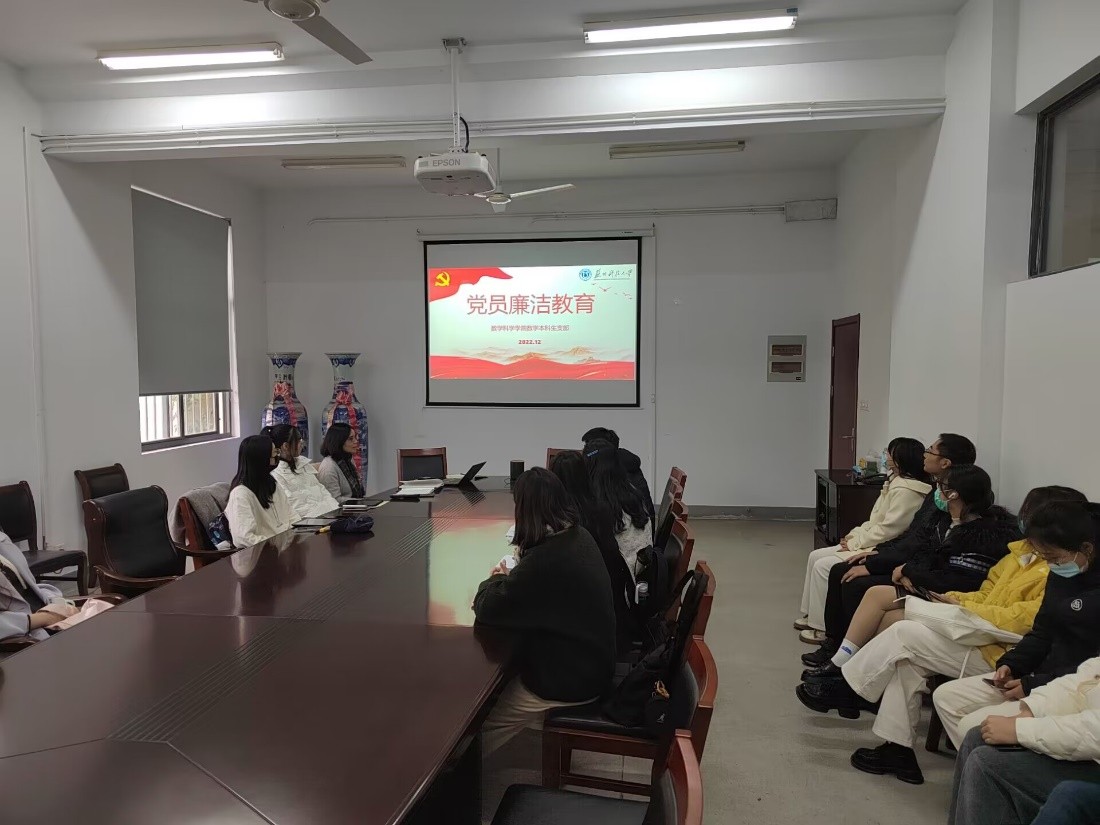 为深入宣传贯彻落实党的二十大精神,推进全面从严治党向纵深发展,做好员工的廉洁教育工作,12月7日,公司数学本科生支部开展了廉洁教育大会,会议由公司党委副书记兼副经理、数学本科生支部书记胡世怡主持,支部全体党员和入党积极分子参加。