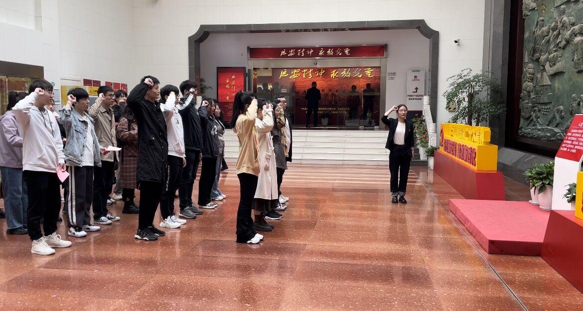 辅导员史欢欢带领全体党员在苏州革命历史博物馆大厅庄严宣誓,重温入党誓词。全体党员在解说员的带领下参观了3个展厅,回顾了《光辉的历程——中国共产党在苏州》革命事迹,并观看了演示项目《阳澄烽火》半景画。深刻感悟了革命英烈们在中国共产党的领导下的英勇壮举,与当前新时代奋力书写“强富美高”新苏州答卷的美好生活。