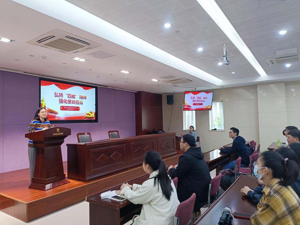 参观结束后,员工党员王一入、蔡铭俣围绕“弘扬‘四敢’精神,强化使命担当”主题在苏州革命博物馆报告厅展开学习宣讲。号召全体党员传承红色基因,赓续红色血脉,让青春在新时代火热实践中绽放绚丽之花。同时全体师生党员在武帅杰领唱下进行《歌唱祖国》大合唱。