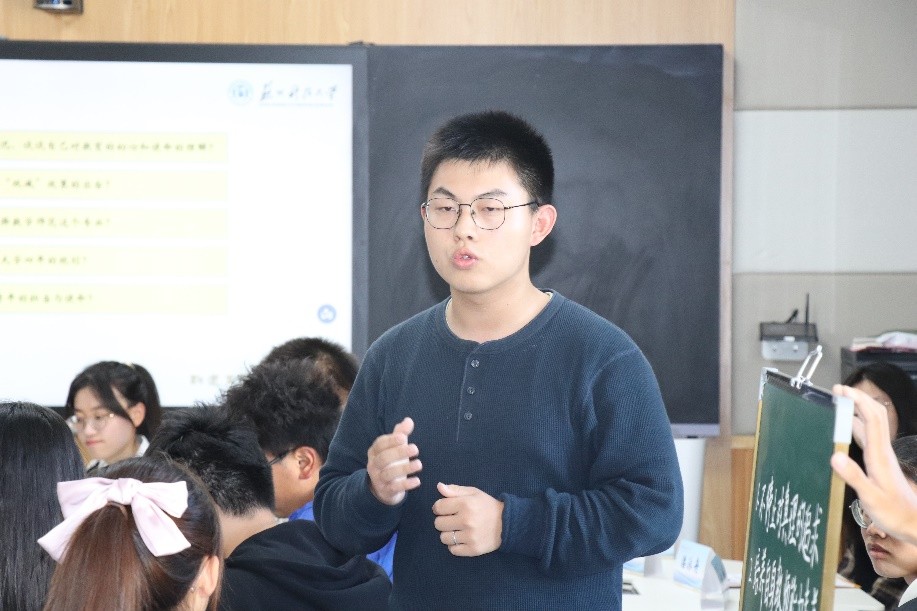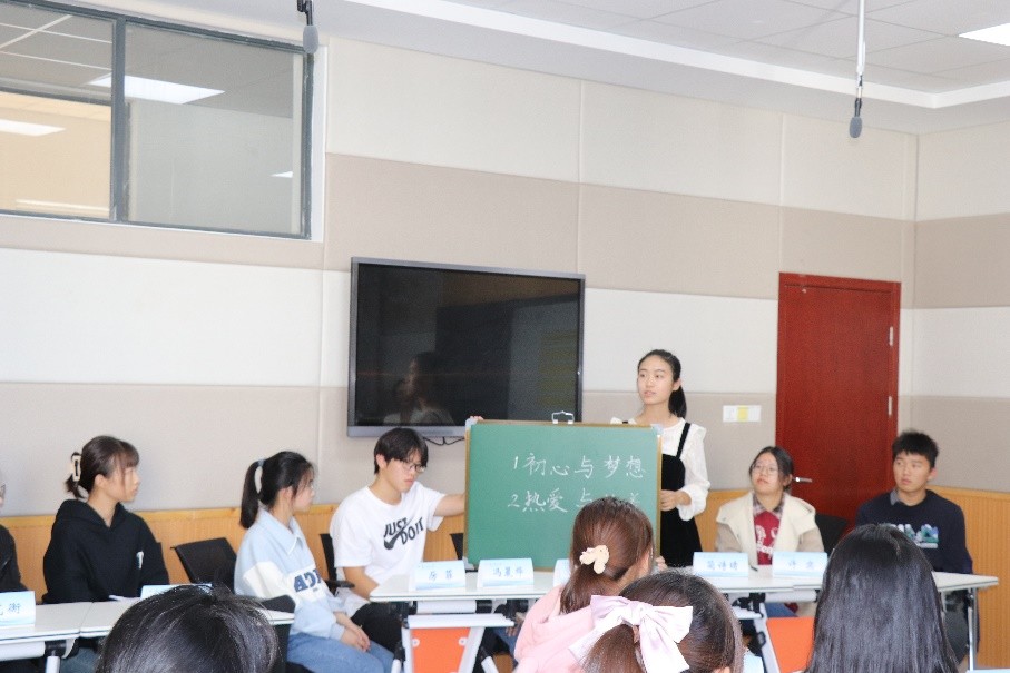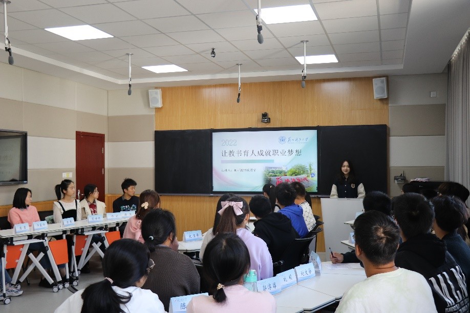 班会上,班主任金振宇与同学们分享了其求学期间恩师的故事。2020级数学师范专业柴思宇结合其个人成长经历,以《让教书育人成就职业梦想》为题,分享了其职业生涯规划的体会与感受。