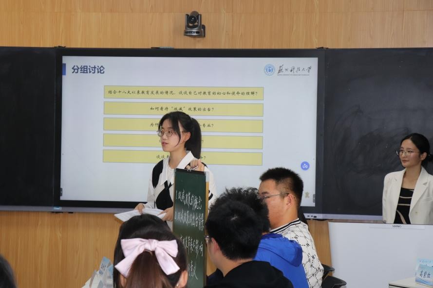 主题班会上,同学们分享了“心中好老师”的感人故事;通过党的二十大代表、云南华坪女子高级中学董事长张桂梅的感人事迹,交流了选择数学师范专业的初心;结合职业生涯规划课程知识,就如何做好自身生涯规划进行分组讨论交流。