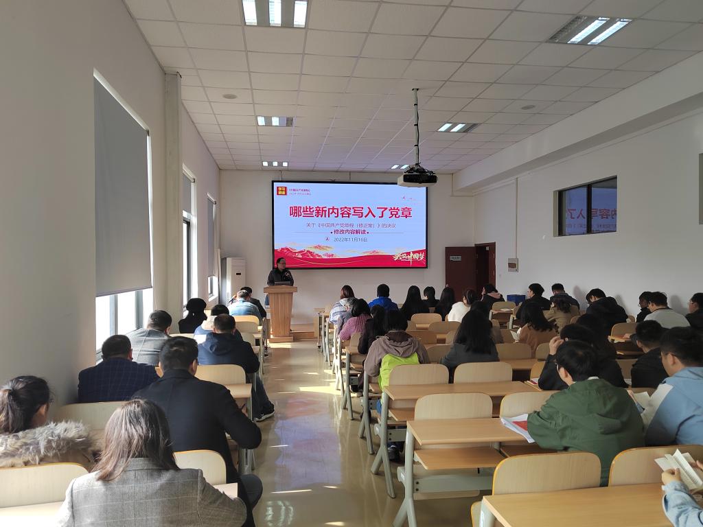 会上,王开永从十个方面系统讲解了新党章的修改内容,详细对比了新旧党章的内容修改并阐述了修改后的深远意义。他指出,作为一名党员,要熟悉新党章的修订内容,继承并弘扬伟大建党精神,在工作学习中,增强“四个意识”、坚定“四个自信”、做到“两个维护”,为全面建设社会主义现代化国家、全面推进中华民族伟大复兴而团结奋斗。