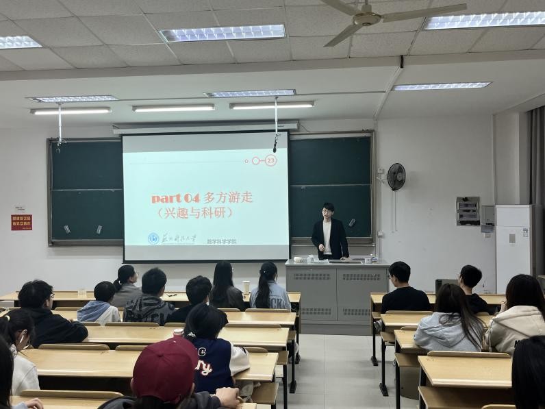 会上,12级优秀毕业生回校任教的付文豪老师结合自身逐步成为优秀教师的经历,娓娓道出“目标”“眼界”“努力”的重要性,指导同学们可将Python、JAVA软件的学习与数学分析等课程有效融合,实现课程学习效果的促进。