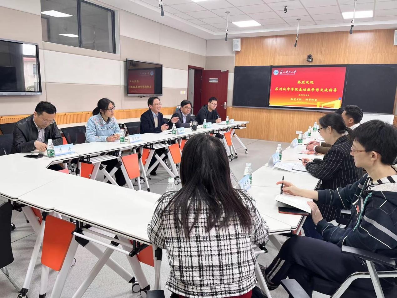 座谈会上,黄志刚代表公司对李勇一行表示诚挚的欢迎,并介绍了数学公司的团队队伍建设、专业建设、公共课课程建设等基本情况。李勇介绍了苏州城市公司基础教学部的基本情况。双方围绕数学公共课教学管理、基础教学组织运行模式、新专业申报以及青年教师培养等方面进行了深入的探讨和交流。