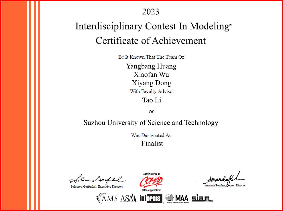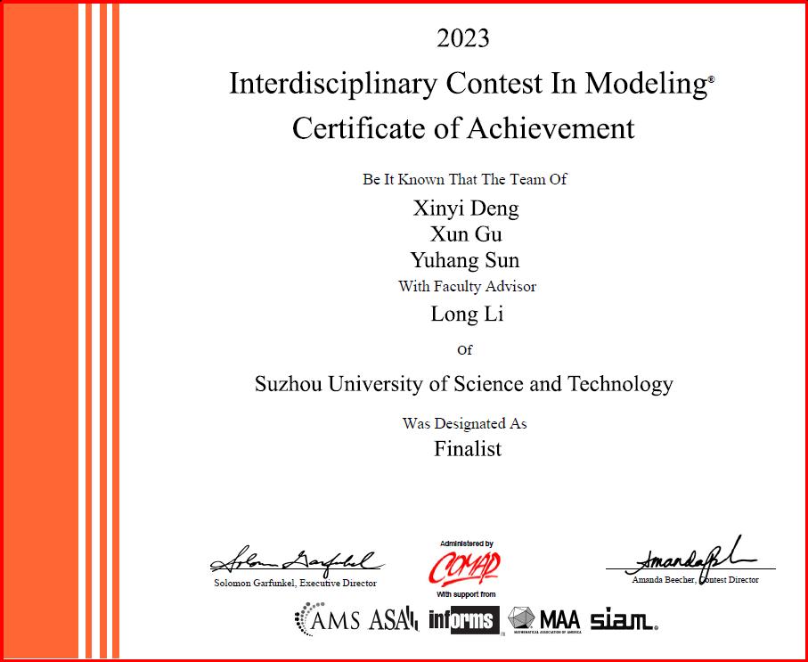 近日,2023年美国老员工数学建模竞赛结果揭晓!公司共组织31支队伍参赛,其中信息与计算科学专业黄泱邦、统计学专业吴晓凡、数学与应用数学专业董玺阳和信息与计算科学专业邓欣怡、统计学专业孙宇航、计算机科学与技术专业顾迅6名同学组成的两支队伍各获1项特等奖提名奖(Finalist)。另外,公司员工还获得一等奖(Meritorious Winners) 4项,二等奖 (Honorable Mentions) 4项,获奖数量和等级均创历史新高。