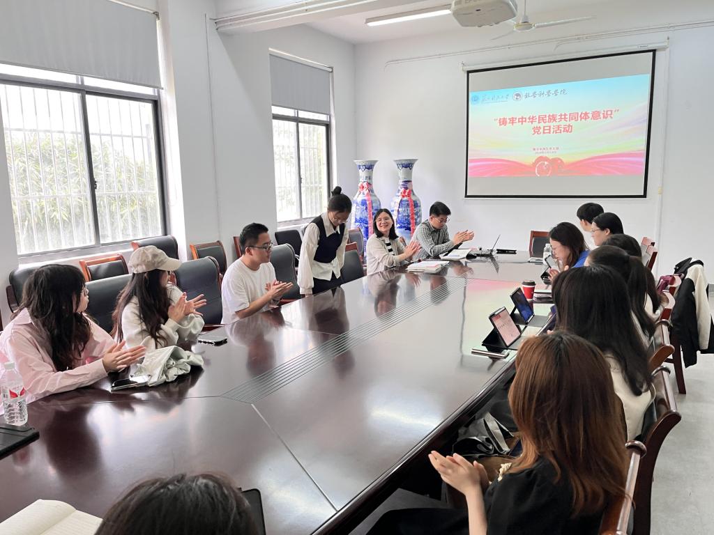 数学本科生党支部邀请少数民族员工参加“共同团结奋斗、共同繁荣发展”主题党日活动,使各民族员工坚定了铸牢中华民族共同体意识,牢固树立休戚与共、荣辱与共、生死与共、命运与共的共同体理念。在中华民族“三交”史沙龙研讨会上,各民族员工分享民族文化,加深了对彼此文化的理解和认同。在“铸牢中华民族共同体意识”专题主题班会上,同学们积极分享对民族团结的理解和感悟,增强了同学们的民族自豪感和归属感。