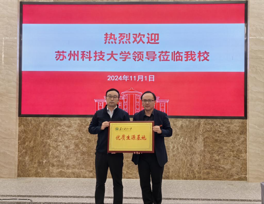 仪式上,陈博介绍了无锡市第一中学的公司发展、办学成果、办学特色等情况。王开永介绍了公司和公司的发展历史、团队状况、办学条件、人才培养等情况。辅导员王伟介绍了公司本科生招生政策和近几年在无锡地区招生的基本情况。王开永和陈博分别代表双方签订了优质生源基地共建协议书,并举行“优质生源基地”授牌仪式。