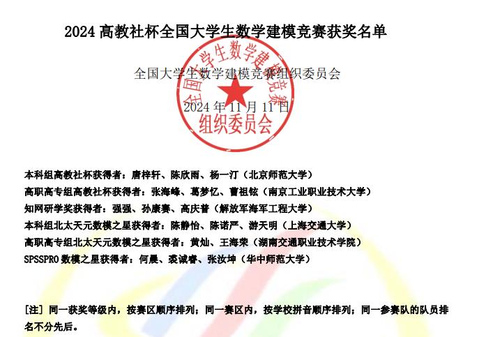 必一运动信息与计算科学专业的郭佳乐、伍昌吉及杨建超团队荣获全国二等奖,这也是公司学子继2022年以来再次摘得全国奖项。