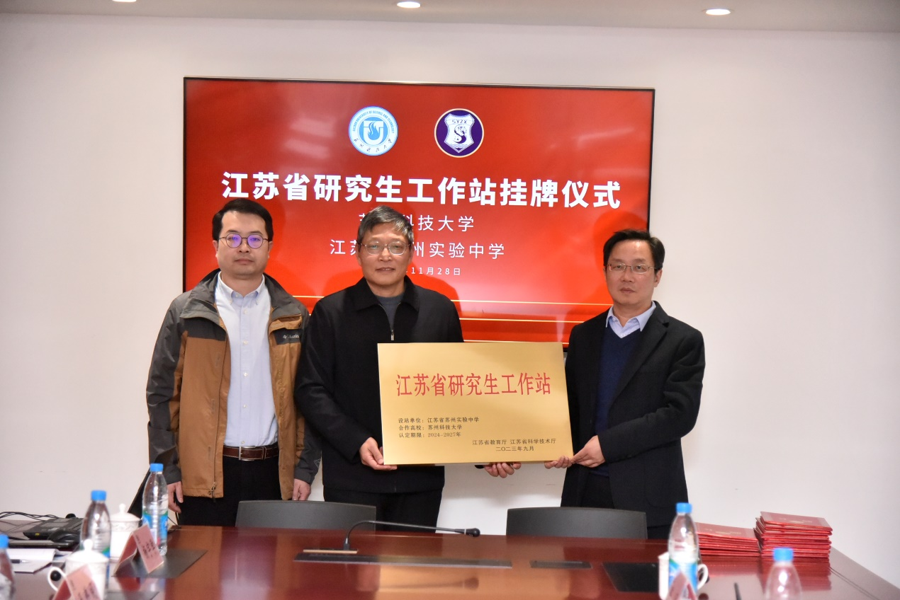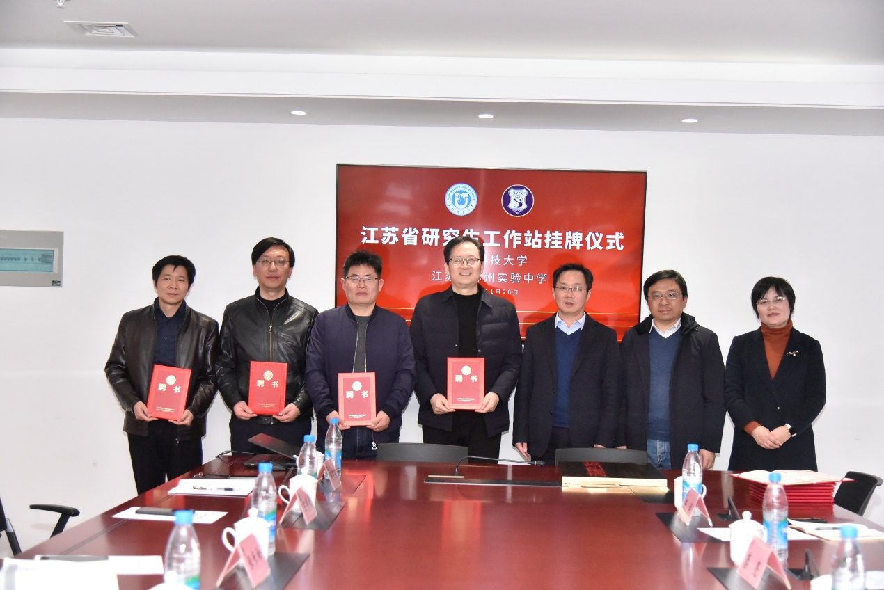 最后,双方领导共同为“江苏省研究生工作站”揭牌,并五位教育硕士校外导师颁发了聘书。