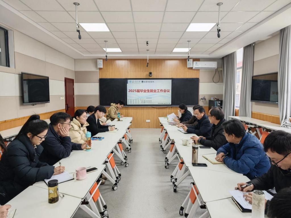 会上,胡世怡总结了2024届毕业生就业工作成果,通报了2025届毕业生情况和目前就业的情况,分析了当下就业形势。毕业班辅导员逐一汇报了2025届毕业生的学业情况、考研意向及就业困难员工情况。参会系主任和班主任针对员工的学习帮扶和就业促进措施进行了讨论。