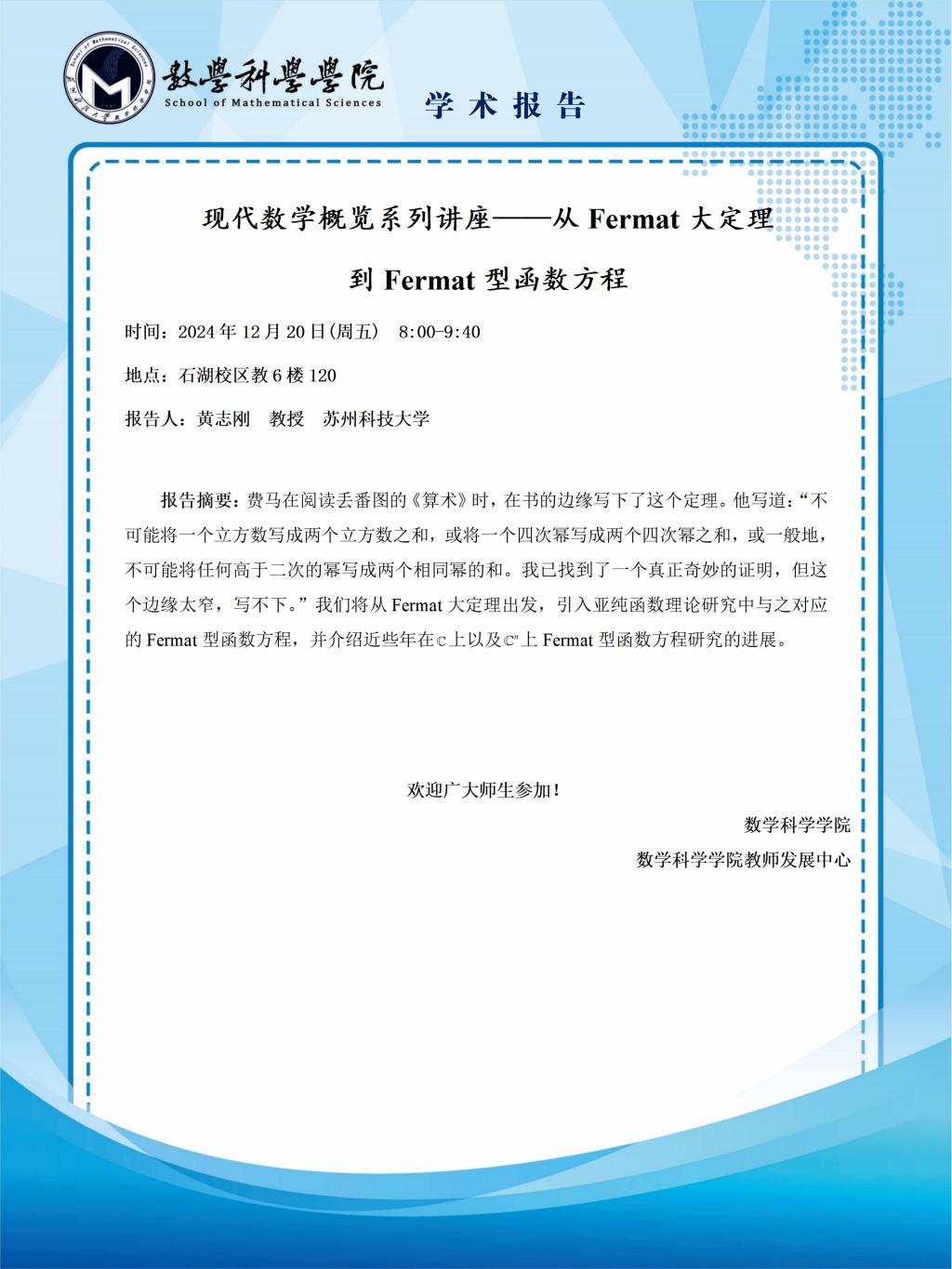 现代数学概览系列讲座——从Fermat大定理 到Fermat型函数方程