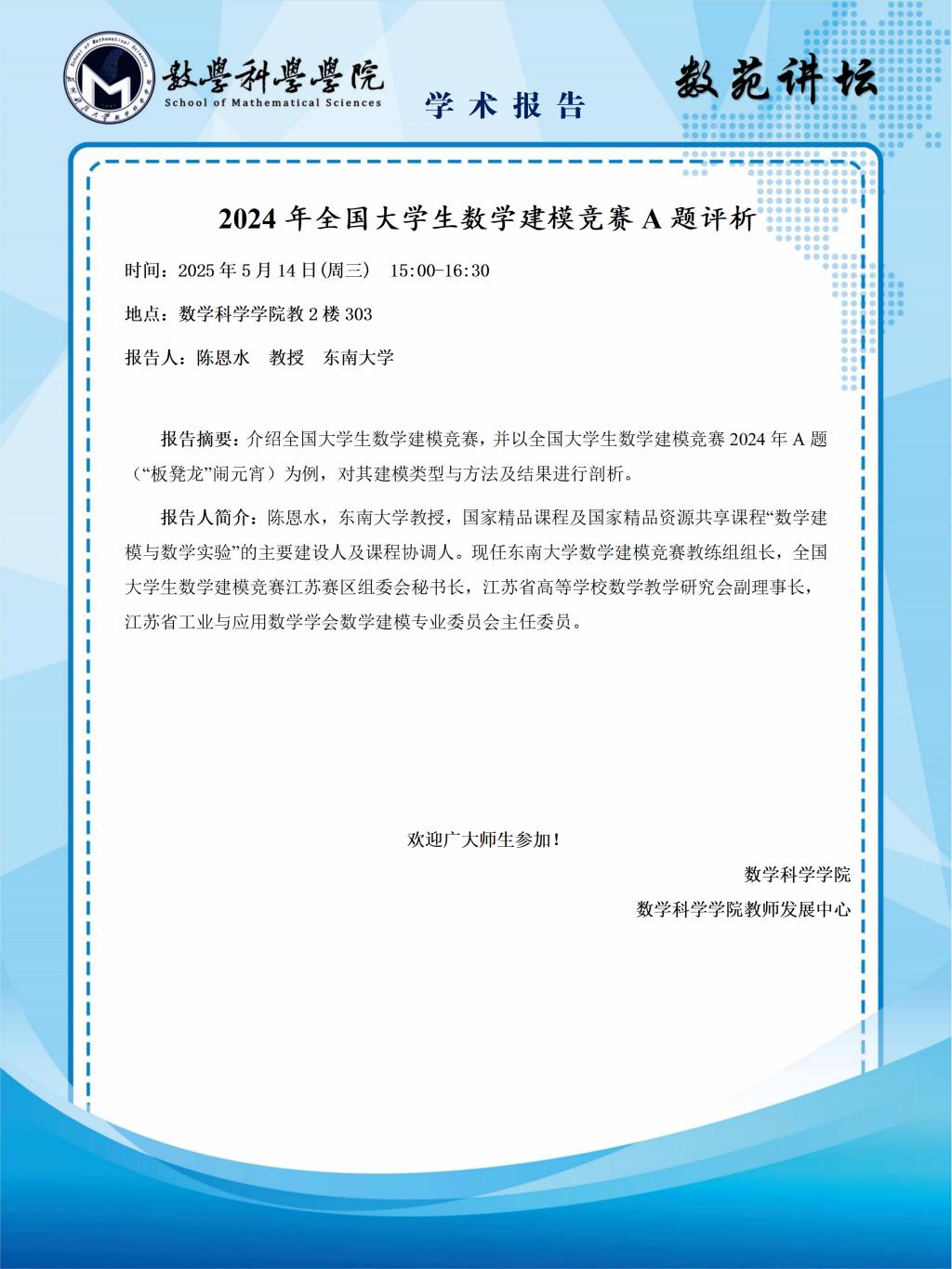 【数苑讲坛】第十五讲:青年教师学术报告
