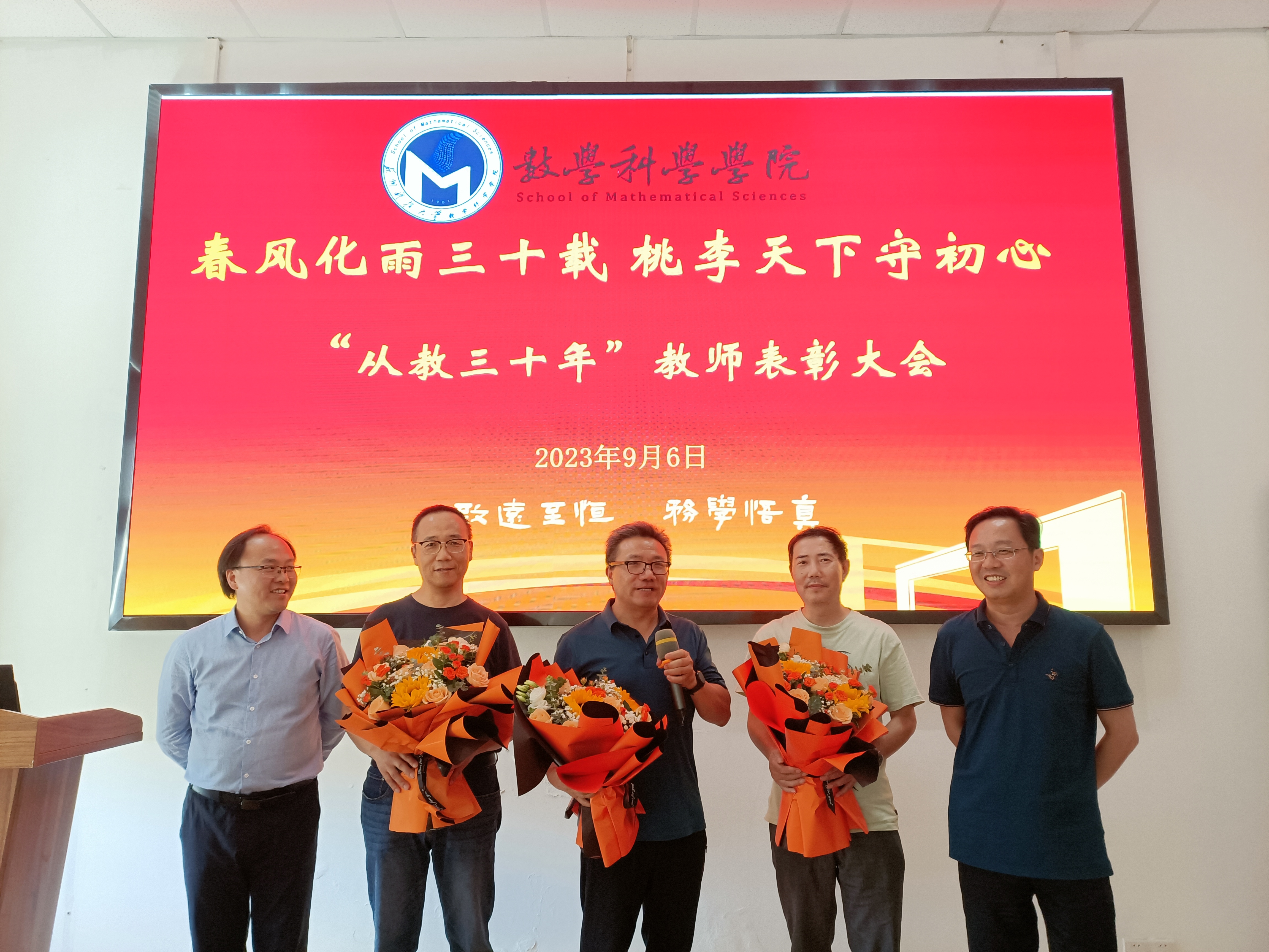 王开永宣读了从教三十周年受表彰教师名单,代表公司向受表彰教师表达感谢和敬意。经理黄志刚分别为徐常青、时百胜和程毛林三位老师献上鲜花。三位老师结合自己工作经历,寄语青年教师,要守住初心,加强学习,提升个人教学和科研能力,为公司发展贡献力量。