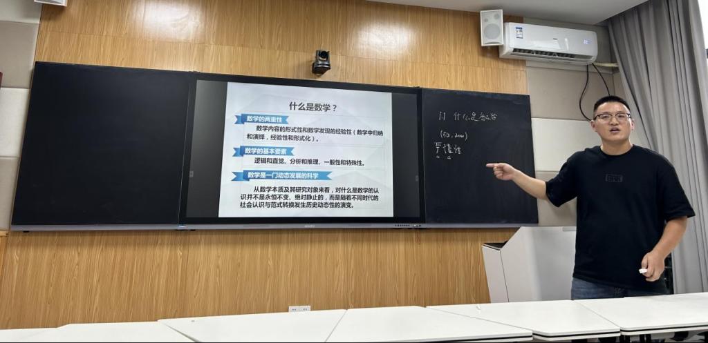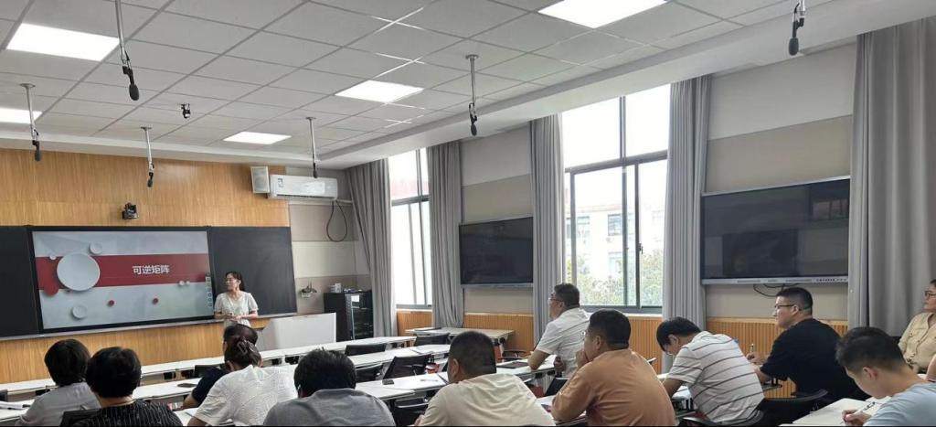 活动邀请了年轻教师钟月圆老师和汪飞飞老师进行了教学展示,钟月圆老师通过“可逆矩阵”教学,展示了教学内容的情景引入、背景、定理以及课堂总结归纳的教学过程。汪飞飞老师则以“什么是数学”为切入点,将抽象的数学与生动的生活实例相结合,使数学变得触手可及、生动有趣。