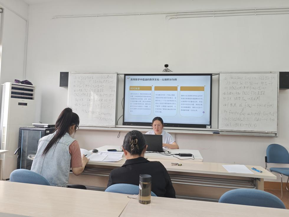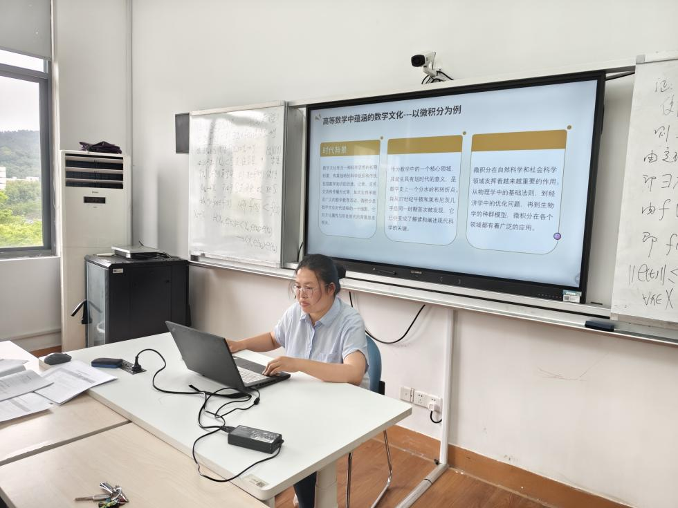 本次研讨会聚焦“高等数学中蕴涵的数学文化”这一主题,特邀张莉敏老师作专题报告。张老师以“数学文化”为切入点,系统阐释了数学文化的内涵。报告详细介绍了高等数学中蕴涵的数学文化。报告以微积分内容为例,展现了其与中国文化中“见微知著”的哲学思想不谋而合,探讨了无穷无尽与形如著名诗人李白“孤帆远影碧空尽,唯见长江天际流”所蕴涵的极限等哲学概念之间的关系,揭示了微积分思想中蕴含的数学文化。在这一过程中,数学不再只是一门纯粹的科学而是一个能够有效地融入到优美的诗词意境之中的具有丰富文化底蕴的学科,它已经成为人类思想交流的桥梁和纽带。