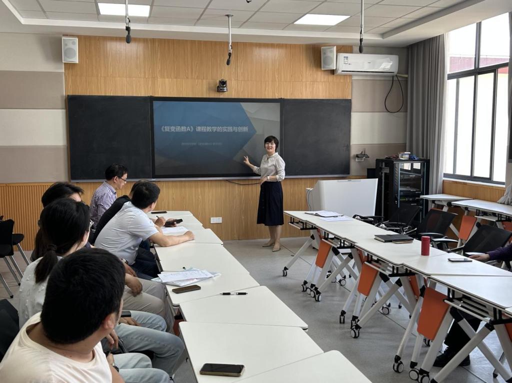 本次活动邀请孙桂荣老师分享关于《复变函数A》课程建设经验。孙老师以"《复变函数A》课程教学的实践与创新"为题,从基本情况、教学设计、教学案例、创新特色等四个方面分享课程及教学资源建设,并以柯西积分定理为教学案例展示结合智能化手段的教学过程并将思政元素融入教学,创新教学模式,提升教学效率与员工体验。