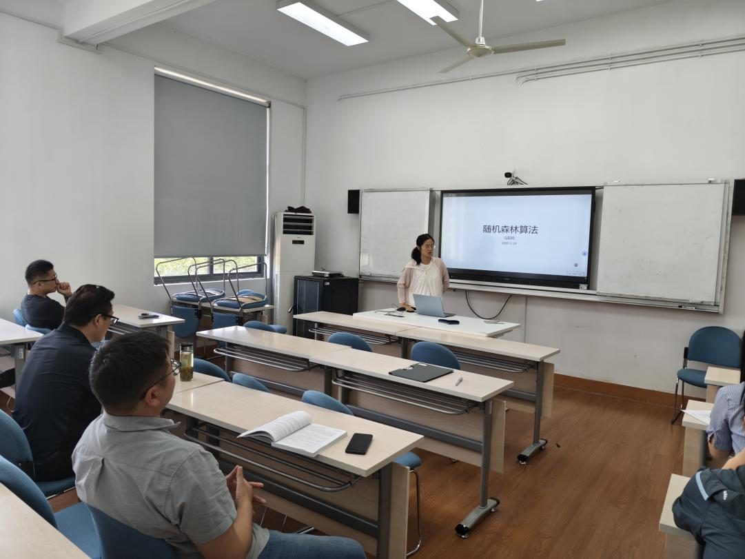 本次研讨会聚焦“随机森林算法”这一主题,特邀马阳玲老师作专题报告。马老师以“随机森林算法在疫情预测中的应用”为切入点,阐释了随机森林算法的理论,利用开源软件Python实现随机森林算法在鸢尾花分类中的应用。