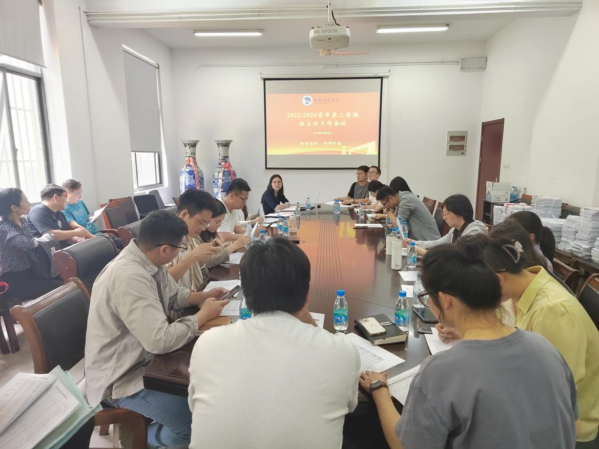 5月22日,必一运动在教2楼107召开2023-2024学年第二学期班主任工作会议,公司党委副书记兼副经理胡世怡、教务办主任王娇、全体班主任和辅导员参加了此次活动,会议由胡世怡主持。