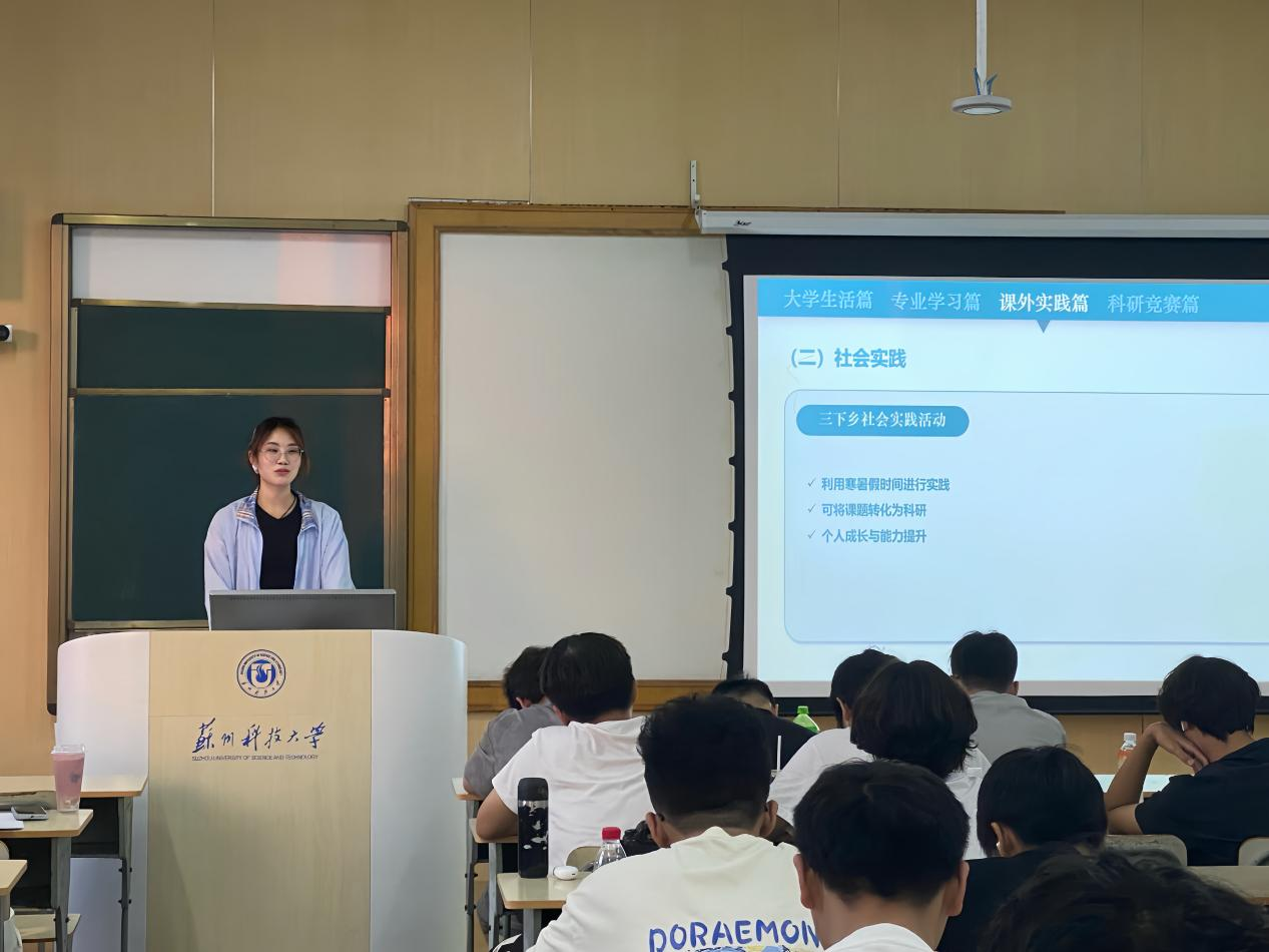 2024年度国家奖学金获得者张昊田,深入浅出地分享了宝贵的学习经验,他鼓励同学们课堂高效学习,课后深度复习,把“听懂”变成“真会”。张昊田还详细讲述了自己大学期间在竞赛领域的拼搏历程,他鼓励同学们要勇于尝试,积极参加各类学科竞赛,在实践中锻炼自己的能力,拓宽自己的视野。